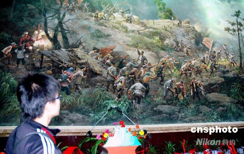 亞洲最大的油畫亮相江西井岡山。該油畫名為《黃洋界保衛(wèi)戰(zhàn)》,長十二米,寬八米,由魯迅美術學院的四名教授歷時二個月精心創(chuàng)作而成。作品反映了一九二八年八月,紅軍憑險據(jù)守井岡山黃洋界哨口粉碎進行第二次“會剿”的國民黨軍的歷史,描繪了一百多個人物,色彩鮮艷,立體感極強。 中新社發(fā) 段長征 攝