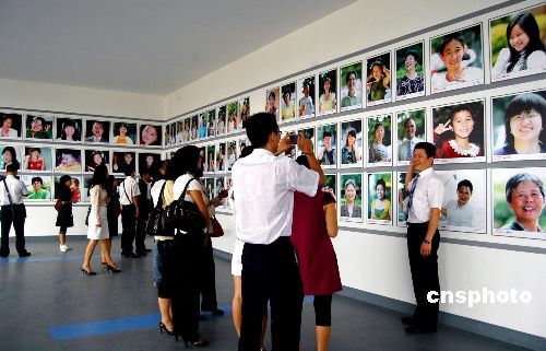 10月24日,在第六屆全國農(nóng)民運(yùn)動會開幕之際,燦爛泉州2008大型攝影展在福建泉州海峽體育中心開展。采自泉州地區(qū)各行各業(yè)人群的2008張“笑臉”圖片,在環(huán)海峽體育中心主體育館二樓進(jìn)行展示,成為福建最大的“笑臉墻”。中新社發(fā) 傅丹丹 攝