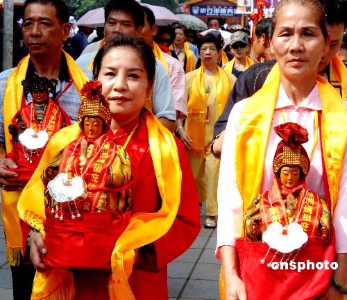 十月三十一日,在媽祖故鄉(xiāng)福建莆田舉行的第十屆湄洲媽祖文化旅游節(jié)上,“媽祖回娘家入城儀式”在市區(qū)舉行。來自十七個(gè)國家和地區(qū)的近三百多家媽祖文化機(jī)構(gòu),及臺(tái)灣一百一十五座媽祖分靈宮廟的信眾回到媽祖故鄉(xiāng)謁祖進(jìn)香。海內(nèi)外來賓一千多人參加了該入城儀式。中新社發(fā) 劉可耕 攝