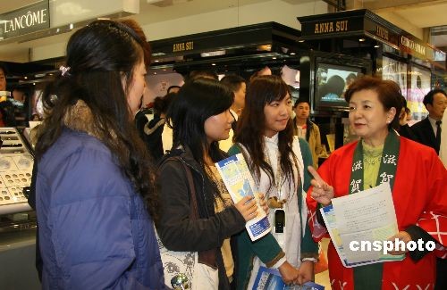 10月31日,日本滋賀縣知事嘉田由紀(jì)子在湖南平和堂商場向消費者推介滋賀縣的旅游資源。當(dāng)天,日本滋賀縣在長沙舉行了旅游推介大會,盛邀洞庭湖的居民到日本游覽琵琶湖。由于該縣一些主要景點都是模仿湖南的“瀟湘八景”而命名,引起了與會人員的強烈興趣。中新社發(fā) 鄧霞 攝