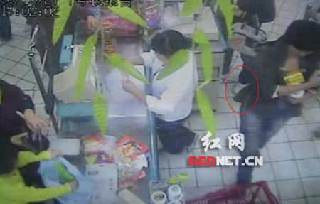 “發(fā)現(xiàn)口袋里手機(jī)沒了的時(shí)候,腦子一片空白,翻了N遍口袋,不太敢相信手機(jī)真丟了!28日晚上,網(wǎng)友“菲林簍”在紅網(wǎng)論壇發(fā)帖爆料,稱27日晚上自己在長沙韶山路步步高林大店購物時(shí),手機(jī)被盜。帖子附帶拍攝的超市監(jiān)控錄像的一組圖,用圈圈勾勒出了自己被3個(gè)年輕女小偷調(diào)包偷手機(jī),并迅速在1分鐘內(nèi)逃離現(xiàn)場的過程。網(wǎng)友們紛紛對發(fā)帖人的遭遇表示同情,譴責(zé)小偷的同時(shí)提醒大家都注意防范。