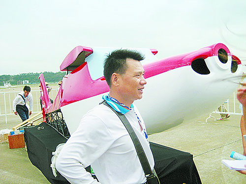 “小豬的主人魏先生,是臺灣舞者科技有限公司的負責人。他告訴記者,該架飛機為量產(chǎn)版的樣機,目前還未真正投入使用,“鼻孔”主要用來給引擎散熱。而一旁名為“沙洲傳奇”的輕航機從1999年第一代成功試飛以來,已經(jīng)賣出四五十架,主要銷往臺灣、內(nèi)地和泰國,每架售價50多萬臺幣。這次來珠海,光運費就花了20多萬臺幣。魏先生介紹,“沙洲傳奇”最高飛行高度為4000米,按照每小時200公里的飛行速度,一次最長可以飛行3.5小時。