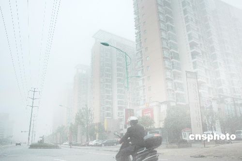 十一月六日清晨,一場大霧籠罩江西南昌,給行車和市民出行帶來一定的不便。據(jù)江西省氣象臺(tái)今晨發(fā)布的大霧黃色預(yù)警信號(hào):目前江西省南昌、撫州、贛州三地市已經(jīng)出現(xiàn)大霧天氣,局部還出現(xiàn)能見度小于二百米的濃霧,請駕駛員和市民出行注意交通安全。中新社發(fā) 段長征 攝