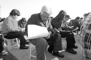 走下主席臺(tái)的鄭國(guó)興,臉上仍掛著緊張的表情。任通州區(qū)永樂(lè)店鎮(zhèn)老槐莊村黨支部書(shū)記(以下簡(jiǎn)稱“支書(shū)”)的他,昨天和該鎮(zhèn)另37名村支書(shū)一起面對(duì)5100名“評(píng)委”———村民代表述職,并接受現(xiàn)場(chǎng)評(píng)議投票。