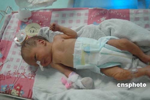 11月8日,廣西醫(yī)科大學(xué)一附院新生兒區(qū)里,一名由植物人孕婦產(chǎn)下的男嬰在手舞足蹈。男嬰的母親名叫唐瑜陸,已癱瘓半年之久,在丈夫的悉心照料下,唐瑜陸于11月5日順利生產(chǎn)。中新社發(fā) 王剛 攝