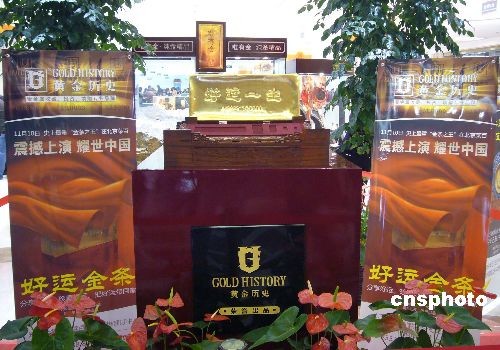 2008年11月10日,一根重達(dá)100公斤的大金條在北京菜百商場亮相。據(jù)悉,這根入選上海大世界基尼斯紀(jì)錄的金條歷時(shí)半年制作而成,如此重的身價(jià)在貴金屬制造史上堪稱“金條王”。中新社發(fā) 玉龍 攝