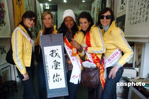 11月12日,參加2008世界模特小姐杭州巡演的60多名佳麗來到杭州“清河坊”歷史古街,與杭州市民近距離接觸,真切感受中國文化。中新社發(fā) 施健學(xué) 攝
