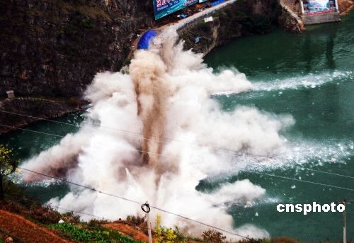 11月22日下午,位于重慶市巫山縣小三峽峽口的龍門大橋成功實施爆破拆除,這是三峽工程175米試驗性蓄水遲來的礙航清障最后一爆,也是三峽庫區(qū)首次采用水壓式爆破方案成功拆除的風景區(qū)景觀大橋。 龍門大橋位于國家級“五A”景區(qū)巫山大寧河——小三峽龍門峽口,全長197米,1987年建成使用。由于大橋?qū)傥覈谝蛔捎脽o平衡重轉(zhuǎn)體法施工的箱形拱橋,腹內(nèi)空心,加之高水位淹沒橋墩,專家決定采取水壓式、中深孔及淺孔三種方式爆破,拱圈翻轉(zhuǎn)180度后碎入湖底,以確保爆破一次性成功、徹底,對風景區(qū)無殘留、污染,即使水位退至150米左右仍不影響大型旅游船只正常通行。中新社發(fā) 饒國君 攝