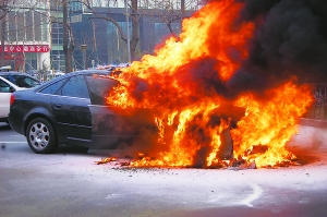 據(jù)車主楊先生說,他駕車從西四環(huán)行至花園橋時(shí)就聞到一股異味,本想把車停至輔路查看一下,可剛開到輔路出口處,車前部已開始冒煙起火。過往司機(jī)紛紛停車拿出車上的滅火器幫忙滅火,卻無濟(jì)于事。不一會(huì)兒就聽到一聲巨響,瞬間車身就被大火籠罩。