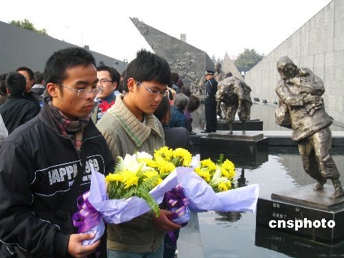 2008年12月13日是南京大屠殺遇難同胞71周年紀念日。南京許多大學生利用雙休日,自發(fā)來到侵華日軍南京大屠殺遇難同胞紀念館,和廣大市民一起悼念南京大屠殺遇難同胞。中新社發(fā) 谷昌旺 攝