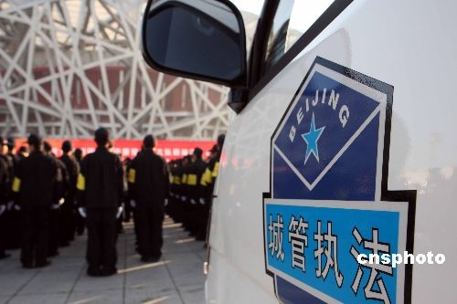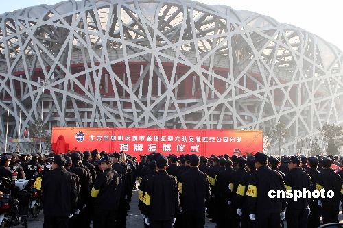 12月15日,北京奧林匹克公園城管分隊(duì)宣布正式成立。據(jù)介紹,奧林匹克公園城管分隊(duì)隸屬于奧林匹克公園管委會(huì),共有城管隊(duì)員60人,協(xié)管員140人,以保障奧林匹克公園的良好環(huán)境秩序,重點(diǎn)監(jiān)控鳥巢、水立方、景觀大道、玲瓏塔等區(qū)域。中新社發(fā) 任海霞 攝