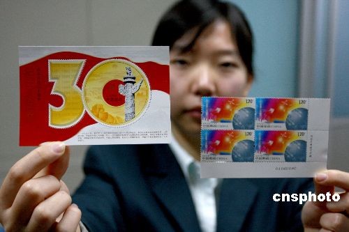 圖:《改革開放三十周年》紀(jì)念郵票在北京發(fā)行