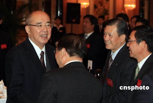12月20日,中國國民黨主席吳伯雄在上海出席第四屆兩岸經(jīng)貿(mào)文化論壇,并與臺商共進(jìn)午餐。中新社發(fā) 湯彥俊 攝