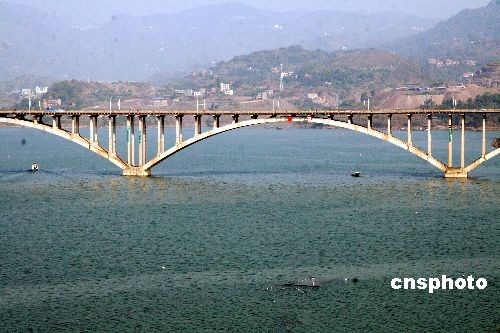 12月21日拍攝的重慶市云陽(yáng)縣雙江大橋“長(zhǎng)虹臥波”景象。最近10多天來(lái),三峽壩前水位保持在169.5米左右,距離最高水位尚差5米多。但該大橋的主墩露出水面已不足3米。在三峽工程經(jīng)歷135米、156米、175米三次蓄水之后,這座昔日曾經(jīng)“高高在上”的移民復(fù)建大橋顯示出橫臥小江的“限航之虞”。 中新社發(fā) 饒國(guó)君 攝