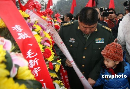 12月26日是毛澤東誕辰115周年紀(jì)念日。當(dāng)天,毛澤東的孫子毛新宇帶著兒子毛東東在韶山出席了相關(guān)紀(jì)念活動(dòng),并給毛澤東銅像敬獻(xiàn)花籃。中新社發(fā) 鄧霞 攝