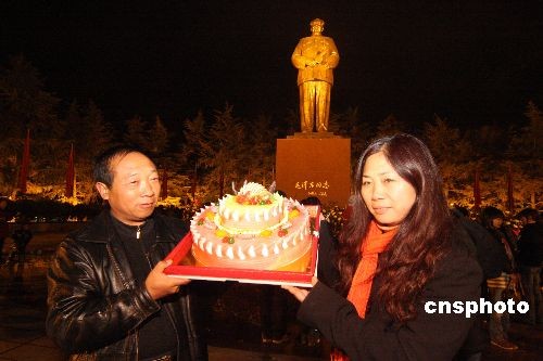 12月26日凌晨,在韶山毛澤東廣場,許多民眾從全國各地趕來用各種方式紀(jì)念毛澤東誕辰115周年。據(jù)悉,紀(jì)念活動將會從零時(shí)起一直持續(xù)到清晨。中新社發(fā) 郭國權(quán) 攝