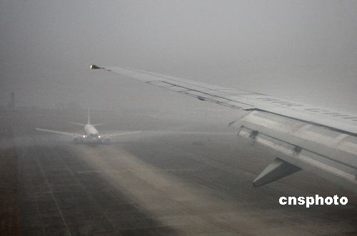 1月18日12時30分,一架滿載回家過年乘客的中國國際航空公司從北京飛往成都的波音738客機(jī),在成都機(jī)場上空盤旋五十分鐘后方降落在依舊被濃霧籠罩的成都機(jī)場跑道。當(dāng)天,四川省的川西平原遭遇今冬極為罕見的超級濃霧天氣,成都機(jī)場的航班大面積延誤,午后方部分開放。中新社發(fā) 任晨鳴 攝