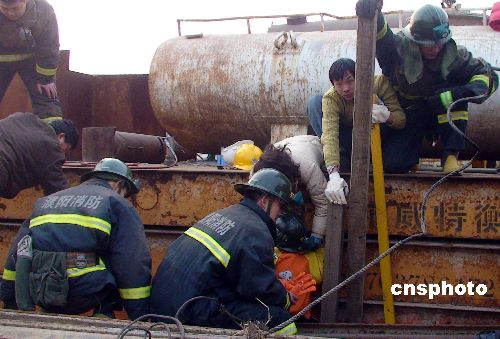 1月19日上午,河南濮陽市一家食品加工點(diǎn)——涼皮作坊的常壓鍋爐發(fā)生爆炸,爐體炸飛20多米高,最后落在30米遠(yuǎn)處的一個(gè)大雜院屋頂上,將房頂砸塌。濮陽市消防支隊(duì)華龍區(qū)大隊(duì)官兵接報(bào)趕到現(xiàn)場后,安全疏散群眾。炸飛鍋爐散落煤炭引起的火災(zāi)在消防官兵的迅速處置下被撲滅,所幸事故未造成人員傷亡。中新社發(fā) 劉敬寬 攝