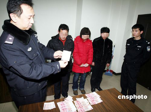 春節(jié)前夕,一些不法分子為逃避打擊,采取北京站內聯(lián)系客源,站外倒票的方法,將接頭地點轉移到崇文門附近。北京崇文警方加大巡邏防控的密度,連續(xù)抓獲8名倒賣火車票的不法分子,起獲火車票14張,非法獲利近2000元,陜西來京人員王曉龍等8人被治安拘留。中新社發(fā) 胡建強 攝