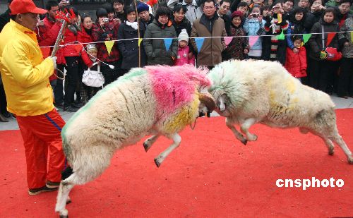 圖:河北正定大廟會上的斗羊表演