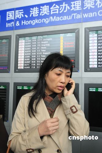 2月3日下午,在美國遭遇車禍?zhǔn)鹿实氖着虾S慰图覍儆H友團,從浦東國際機場啟程飛往美國處理車禍遇難者善后事宜,上海東湖國旅相關(guān)負(fù)責(zé)人陪同前往。圖為東湖國旅人員邊女士在浦東國際機場。中新社發(fā) 湯彥俊 攝