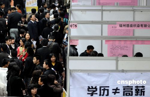二月三日,福州舉辦春節(jié)后首場針對大中專畢業(yè)生的招聘會,一展位前掛起了“學(xué)歷不等于高薪”的橫幅。就業(yè)市場中,實(shí)踐經(jīng)驗(yàn)、社會交際等能力開始成為各用人單位考察畢業(yè)生的重要要求。中新社發(fā) 王東明 攝