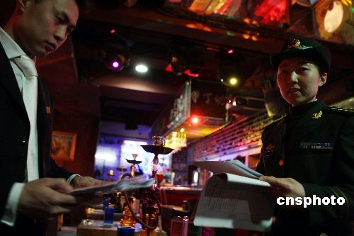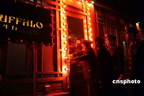 二月五日晚,北京西城消防支隊(duì)對轄區(qū)的什剎海酒吧街進(jìn)行安全檢查,杜絕火災(zāi)隱患。中新社發(fā) 任海霞 攝