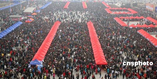 2月6日,“2009年河北省畢業(yè)生就業(yè)市場(chǎng)”在石家莊市東開發(fā)區(qū)火炬廣場(chǎng)舉行。這是河北省今年首場(chǎng)、也是全年規(guī)模最大的一次畢業(yè)生就業(yè)活動(dòng),招聘大會(huì)有1362家單位報(bào)名,提供近3萬(wàn)個(gè)工作崗位,招聘單位和崗位數(shù)量均創(chuàng)該省歷史新高,預(yù)計(jì)將有10萬(wàn)名求職者爭(zhēng)搶“飯碗”。