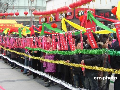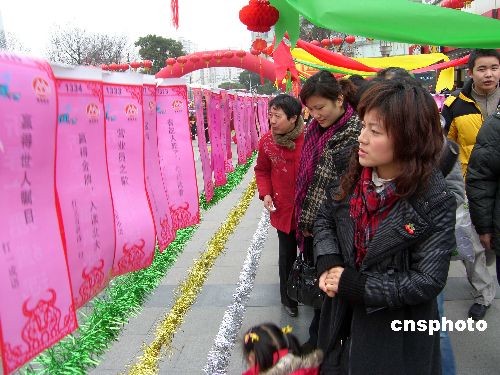 元宵節(jié)臨近,2月7日,江蘇無(wú)錫崇安寺二泉廣場(chǎng)舉行新春猜謎活動(dòng),吸引了許多市民。中新社發(fā) 盛國(guó)平 攝