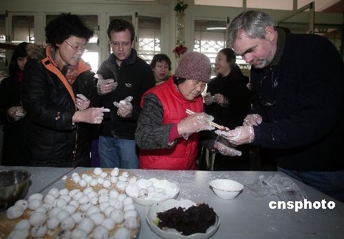 2月8日,中國(guó)傳統(tǒng)元宵節(jié)將至,北京東四四條胡同的一座四合院里,社區(qū)居民和同住在社區(qū)里的美國(guó)、法國(guó)友人一起慶祝元宵佳節(jié),一起包湯圓,猜燈謎,做花燈,體驗(yàn)中國(guó)傳統(tǒng)節(jié)日和民俗。中新社發(fā) 杜洋 攝