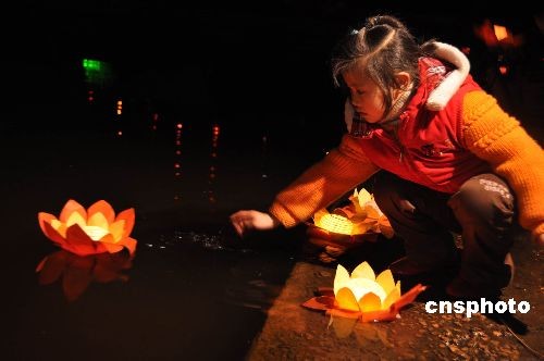 2月9日晚,湖南長沙到處充滿著元宵佳節(jié)的喜慶氣氛,來自全省各地的數(shù)千游客聚集在文明湖邊,將一盞盞心愿荷燈托在手中許上新年心愿,然后放漂。中新社發(fā) 肖前輝 攝