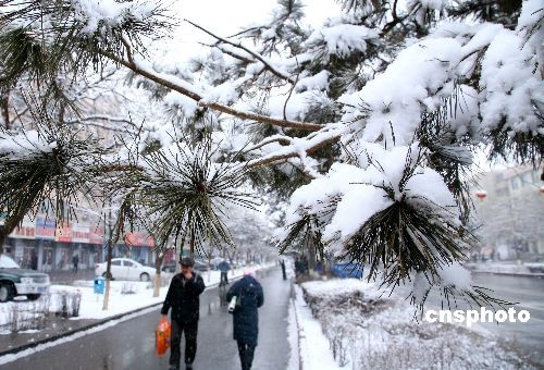 2月13日,新疆哈密地區(qū)出現(xiàn)降雪降溫天氣,哈密市街頭的樹木上掛滿了白雪,形成了美麗的雪凇景象。據(jù)了解,地處盆地的哈密市在春天出現(xiàn)雪凇現(xiàn)象十分少見。中新社發(fā) 蔡增樂 攝