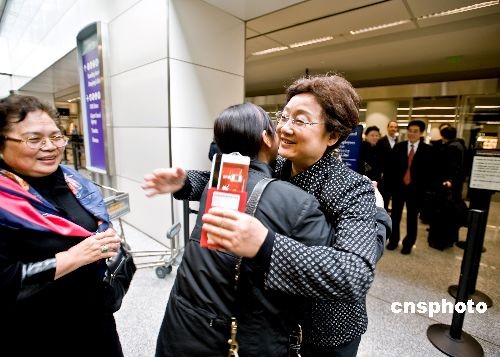 當(dāng)?shù)貢r間二月十四日,中國國務(wù)院僑辦主任李海峰和《四海同春》藝術(shù)團結(jié)束了為期十八天的美國慰僑演出,離開舊金山返京。圖為李海峰離美前向前來送行的僑胞依依惜別。中新社發(fā) 陳鋼 攝