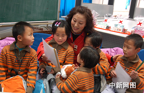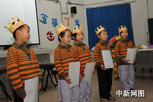 3月4日,在北京豐臺(tái)區(qū)實(shí)驗(yàn)小學(xué)就讀的河北滄州五胞胎繳福慶、繳福森、繳福莉、繳福欣、繳福源迎來7周歲生日,學(xué)校為他們舉辦了“快樂與感恩”主題班會(huì)。正在北京開“兩會(huì)”的黑龍江省全國人大代表蘇艷霞抽閑參加了生日會(huì)并向五胞胎贈(zèng)送了生日禮物,7年來,蘇艷霞女士一直關(guān)注著“五福娃”的成長(zhǎng)。王少華 張書儉 攝