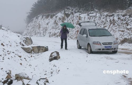 3月7日下午,浙江省天臺(tái)縣千米高山的蒼山頂下起大雪。據(jù)當(dāng)?shù)貧庀蟛块T(mén)介紹,這個(gè)季節(jié)下雪在當(dāng)?shù)夭⒉欢嘁?jiàn)。中新社發(fā) 丁必裕 攝