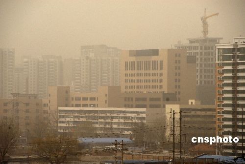 3月15日13時(shí)左右,北京城區(qū)出現(xiàn)浮塵,能見度降低。據(jù)北京市氣象臺最新消息,北京今天受上游沙塵天氣影響,出現(xiàn)浮塵天氣。中新社發(fā) 草木 攝