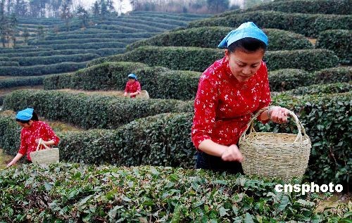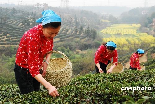 3月19日,廬山云霧茶各生產基地開始采摘新茶。這也意味著品質最好的廬山云霧茶新茶“明前茶”將開始進入市場。廬山云霧茶因日照霧薰,其味清香異常,經(jīng)久不散,是中國有名的特種茶,以“味醇、色秀、香馨、液清”而久負盛名,連續(xù)兩屆獲中國國際茶業(yè)博覽會金獎。中新社發(fā) 胡國林 攝