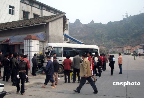 三月二十一日下午二時左右,福建寧德市區(qū)一輛載有十余人的公交車因緊急剎車躲避前方突然掉頭的小車,撞上了路旁圍墻,造成至少兩人受傷。當?shù)叵、交警、醫(yī)療等部門聞訊迅速趕到現(xiàn)場進行處置,很快救出被困人員。中新社發(fā) 張彩林 攝