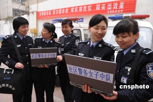 3月24日,鄭州市公安局金水分局花園路派出所結(jié)合轄區(qū)實際,以及青年女民警溫和細膩親和力強便于開展社區(qū)警務的特點和優(yōu)勢,由鄭州市公安局金水分局花園路派出所11名社區(qū)女民警組成的河南公安首支“社區(qū)警務女子中隊”正式上崗。據(jù)了解,該“社區(qū)警務女子中隊”采用分片聯(lián)勤工作機制,既有各自的社區(qū)警務責任分工,又有相互合作聯(lián)勤協(xié)調(diào),優(yōu)勢互補。 中新社發(fā) 劉書亭 攝