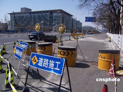2009年3月25日,北京長(zhǎng)安街西單文化廣場(chǎng)前非機(jī)動(dòng)車道,近40平方米路面發(fā)生輕微沉降。事發(fā)后,該路面被交管部門臨時(shí)封閉,F(xiàn)場(chǎng)勘測(cè)人員介紹,沉降路面下方為地鐵四號(hào)線與一號(hào)線的換乘通道,此處路面沉降約1.85厘米。目前,相關(guān)工程暫停施工。中新社發(fā) 九州 攝