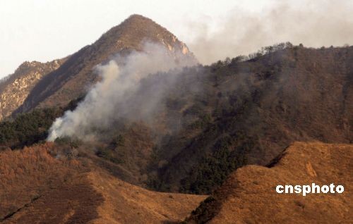 3月25日下午1時(shí)許,北京密云縣太師屯鎮(zhèn)二道河子村南側(cè)山林起火,附近村民和多個(gè)鎮(zhèn)撲火隊(duì)前往現(xiàn)場(chǎng)滅火。因遇大風(fēng),滅火期間又發(fā)生復(fù)燃,至昨晚11時(shí)許,大火被撲滅,過火面積達(dá)上千畝,暫未出現(xiàn)人員傷亡情況。起火原因仍在調(diào)查中。中新社發(fā) 曉村 攝