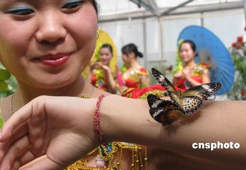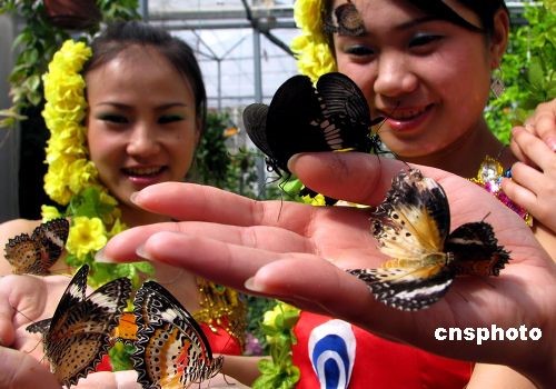4月1日,位于北京植物園內(nèi)的熱帶蝴蝶生態(tài)園正式開園,數(shù)千只色彩斑斕的蝴蝶和數(shù)十種千奇百怪的蟲子將正式與游客見面。熱帶生態(tài)蝴蝶園是中國內(nèi)地首次從馬來西亞檳城蝴蝶園進口的集昆蟲蝴蝶標本、活體昆蟲展示和活蝴蝶放飛為一體的具有知識性、趣味性、科普性、教育性的昆蟲蝴蝶科普生態(tài)園,也是國內(nèi)第一家進口的活體蝴蝶和昆蟲品種最全、規(guī)模最大、蝴蝶昆蟲標本最多科普展。熱帶蝴蝶生態(tài)園共分為三個展區(qū):蝴蝶館、昆蟲館、科普標本館。圖為蝴蝶生態(tài)園吸引游客。中新社發(fā) 錢興強 攝