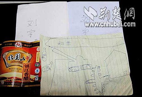 昨日(21),洪山區(qū)(武漢)南湖工商所接到舉報,在該區(qū)紅旗村一臨時搭建的民房中查獲一個制假作坊,收繳大量假名牌醋等。據(jù)查,作坊老板劉某是安陸人,今年2月起與妻子在此租房,以每袋2毛錢購進(jìn)散裝醋精,兌水炮制“名醋”,低價賣給周邊副食店和小超市。執(zhí)法人員現(xiàn)場發(fā)現(xiàn)一幅筆法幼稚的漫畫:一輛坦克的大炮直指2瓶“名醋”。劉某的妻子稱,這是她11歲的兒子為諷刺他們制假而作。(張樂克 徐永峰 章敏)