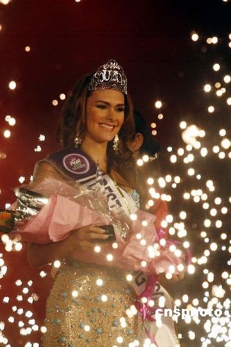3月25日晚,委內(nèi)瑞拉小姐Maria Lourdes獲得最佳晚裝小姐單項(xiàng)賽大獎(jiǎng)。當(dāng)晚,2008國(guó)際旅游小姐冠軍總決賽最佳晚裝小姐單項(xiàng)賽在河南鄭州舉行,來(lái)自115個(gè)國(guó)家和地區(qū)的佳麗參加了角逐。中新社發(fā) 慎重 攝