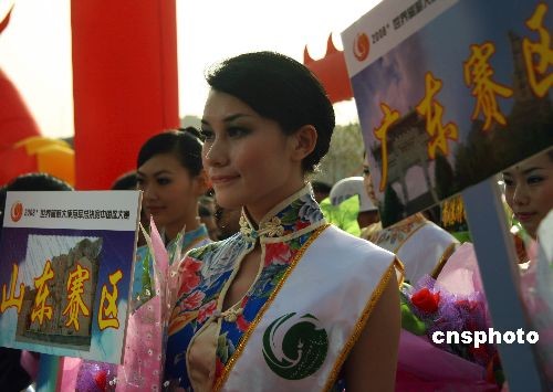 12月1日上午,2008世界旅游大使冠軍總決賽中國區(qū)決賽在河北省正定縣開幕,來自全國30個省市和地區(qū)分賽區(qū)的60名佳麗將在這里角逐中國區(qū)大賽冠軍。在北方10攝氏度左右低溫下,選手們以旗袍出場,果然美麗“凍”人。中新社發(fā) 翟羽佳 攝