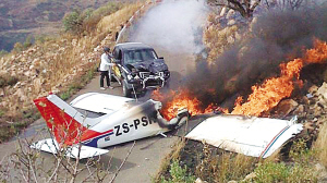 6月7日下午,南非約翰內(nèi)斯堡當(dāng)?shù)?0歲女子莫尼卡·布拉甘卡駕駛一輛福特小貨車在克魯吉斯多普機(jī)場附近的一條公路上行駛,汽車上還坐著另外一名叫做安娜·瓦林娜的女子和一名名叫托尼的男子。當(dāng)莫尼卡駕車行駛時,她突然看到天空中有一架輕型飛機(jī),正朝她的小貨車筆直地俯沖下來!由于汽車行駛的公路非常狹窄,莫尼卡根本來不及避讓這架從天而降的輕型飛機(jī)!