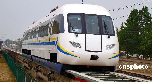 6月15日,中國首列具有完全自主知識產(chǎn)權(quán)的實用型常導中低速磁懸浮列車,在中國北車集團唐山軌道客車有限公司下線并完成調(diào)試,開始進行線路運行試驗,標志著中國已具備中低速磁懸浮列車產(chǎn)業(yè)化的制造能力。該列車為3輛編組模式,車體采用鋁合金與鋁蜂窩鉚焊混合超輕車體結(jié)構(gòu),流線型,全車各部件采用輕型、環(huán)保材料,內(nèi)部裝飾造型簡潔明快、舒適美觀,裝有空調(diào)、影音及廣播系統(tǒng)。運行時速一般在120公里,使用壽命在25年以上。圖為試運行中的中國首列實用型中低速磁懸浮列車。中新社發(fā) 翟羽佳 攝