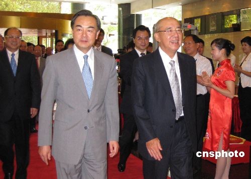中國國民黨主席吳伯雄率參加第五屆兩岸經(jīng)貿(mào)文化論壇的中國國民黨代表團(tuán),7月10日下午乘臺北直飛的包機抵達(dá)湖南長沙黃花機場。中共中央臺辦主任王毅等到機場歡迎。第五屆兩岸經(jīng)貿(mào)文化論壇將于7月11日至12日在長沙舉行,論壇的主題是兩岸文教交流。中國國民黨、親民黨、新黨、無黨團(tuán)結(jié)聯(lián)盟、部分民進(jìn)黨人士,和眾多臺灣文化、教育、宗教屆和經(jīng)濟(jì)界代表與會。中新社發(fā) 傅煜 攝