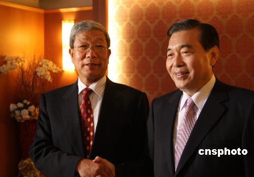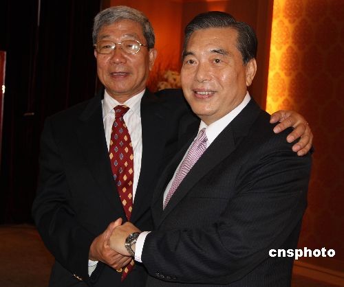 大陸海峽兩岸經(jīng)貿(mào)交流協(xié)會會長李水林率領(lǐng)“兩岸經(jīng)貿(mào)促進(jìn)考察團(tuán)”到臺灣進(jìn)行采購。圖為6月1日,李水林(左)與臺灣外貿(mào)協(xié)會董事長王志剛(右)共同接受采訪。李水林說:“我們是多年的好朋友、好兄弟。我長兩歲,稱大哥,志剛小兩歲,稱老弟。我們喝酒,志剛要先喝兩杯。”中新社發(fā) 耿軍 攝