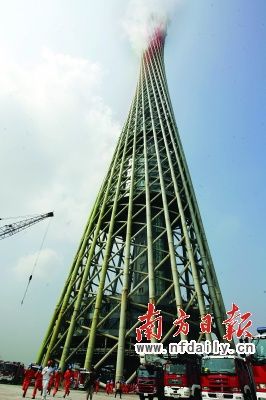 數(shù)公里外,就能看到廣州新電視塔“噴出”的滾滾濃煙。消防監(jiān)控中心顯示,起火點(diǎn)位于塔樓約334米高的65層。廣州新電視塔建設(shè)單位隨即啟動(dòng)應(yīng)急預(yù)案進(jìn)行自救。8分鐘后,塔樓內(nèi)施工的400多名工人順著逃生樓梯成功逃出。